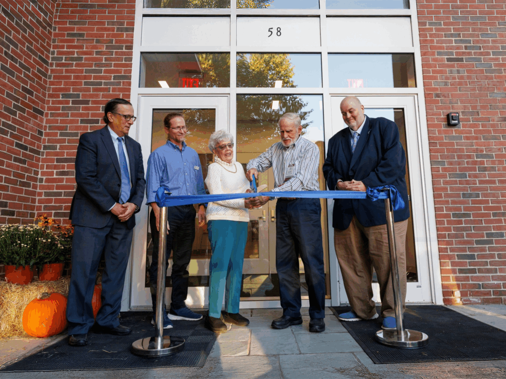 From left: Lex Scourby, Chair of the Board of Trustees at NEC; Dr. James Newcomb, Dean of Science, Health, and Exercise Division and Professor of Biology and Health Science at NEC; Betty Ann and Austin Kovacs; and Dr. Wayne F. Lesperance, Jr., President of NEC attend the ribbon-cutting ceremony for the newly named Austin and Betty Ann Kovacs Science Center at New England College.