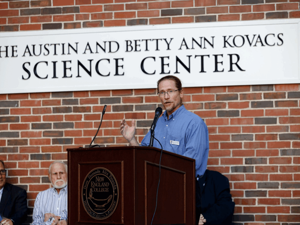 Dr. James Newcomb—Dean of Science, Health, and Exercise Division and Professor of Biology and Health Science at NEC—speaks at the ribbon-cutting ceremony.